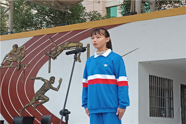 大家早上好!我是来自C1906班的覃思颖,今天我国旗下讲话的题目是“走在阳光下,勤奋促成长”。