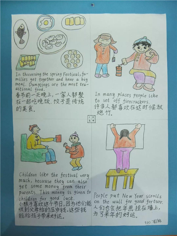 语言是沟通交流的工具。对于怀雅学子来说,英语是活泼的、有趣的。让我们来欣赏孩子们用英语漫画表现的春节小故事!